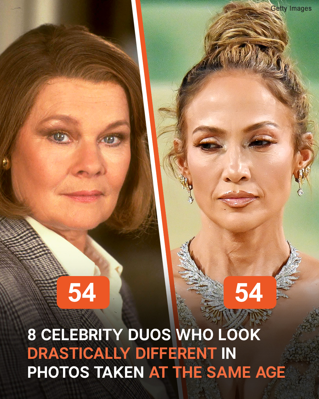 Jennifer and Judi showcase that women in Hollywood do not let age bother or deter them. The two only look slightly different at the same age of 54 as Judi’s facial features show more pronounced wrinkles and less defined cheekbones compared to Jennifer, whose lips, eyes, and cheeks exude a youthful softness.