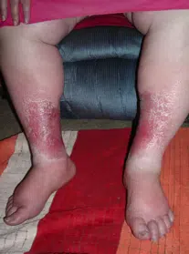 This can also be confused with cellulitis due to its red, swollen, irritated skin.