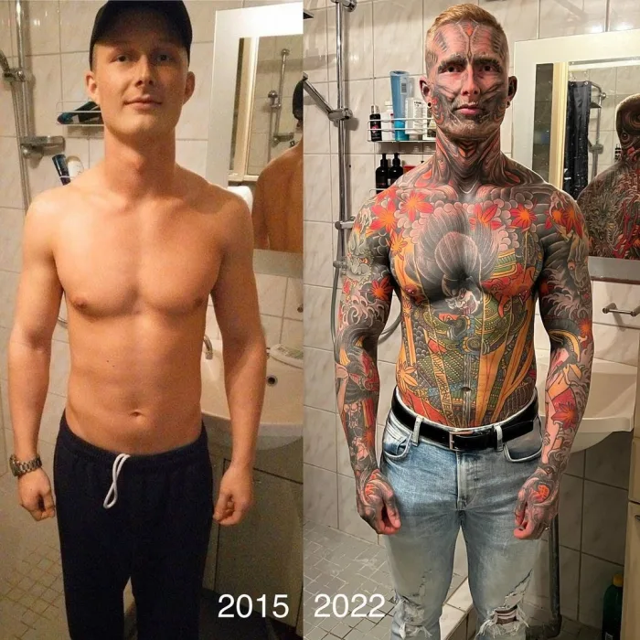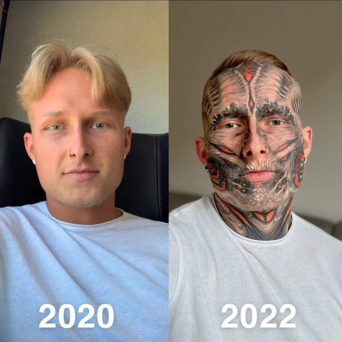 Would you ever consider undergoing such a radical transformation through tattoos? It’s a question that prompts contemplation and reflection on the diverse ways we choose to express ourselves.